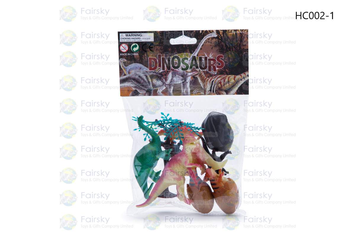 SET OF 10 PCS PVC DINOSAURS + TREE + ROCK IN POLYBAG WITH 6″x6″ HEADER CARD.